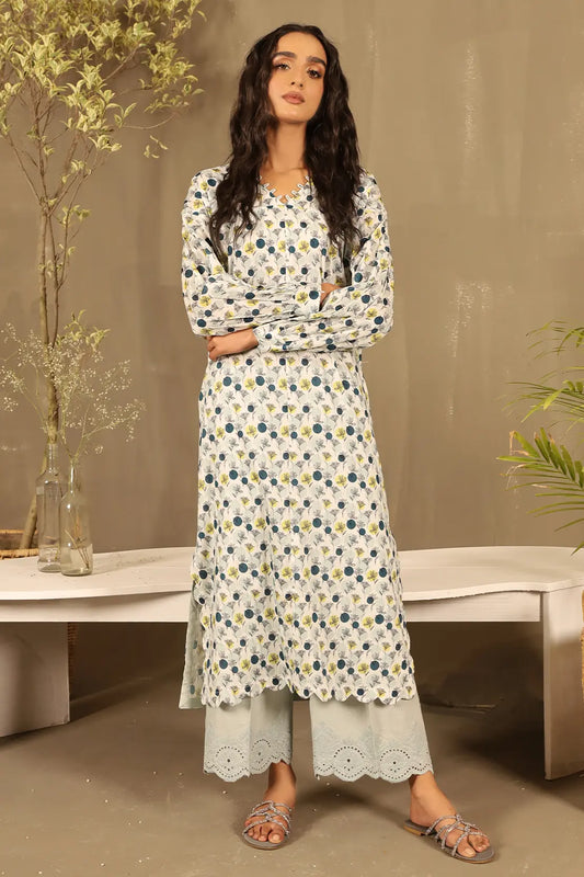 2 Piece - Printed Lawn Shirt with Embroidered Trouser - 7634