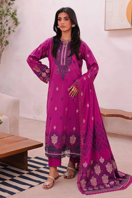 3 Piece - Premium Embroidered Dhanak Wool - 4005