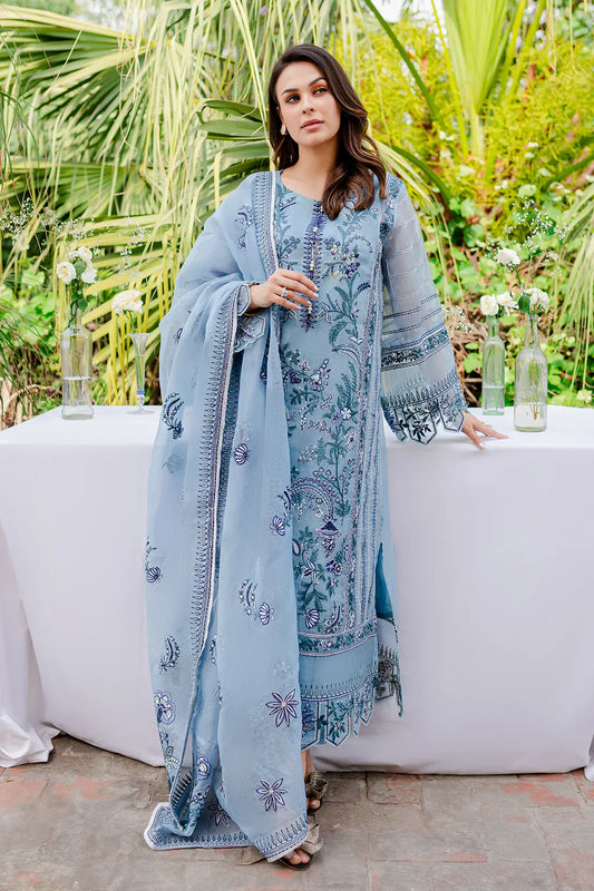 4 Piece – Mareen Sky Blue – Cotton Net Embroidered Suit