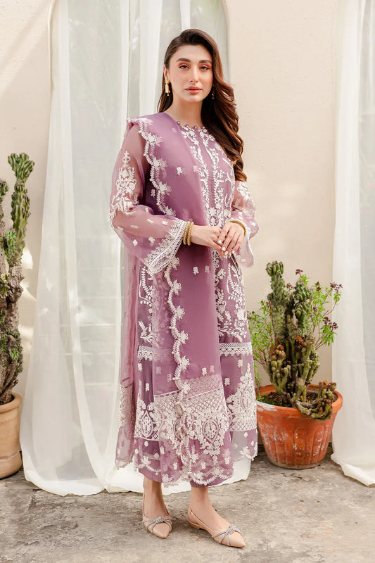 4 Piece – Zania Lavender – Organza Embroidered Suit