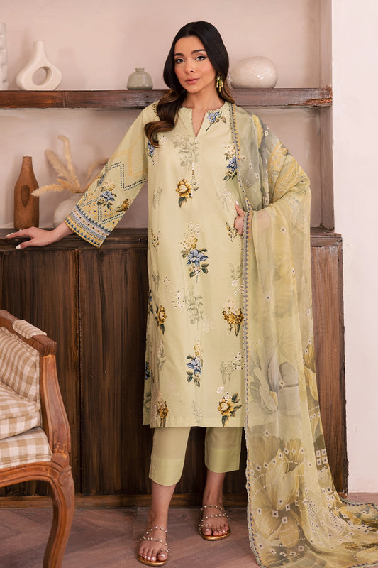3 Piece - Premium Embroidered Lawn - 024