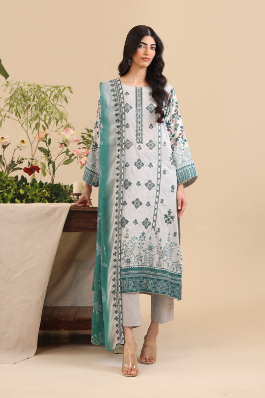 3 Piece - Premium Embroidered Lawn - 9125
