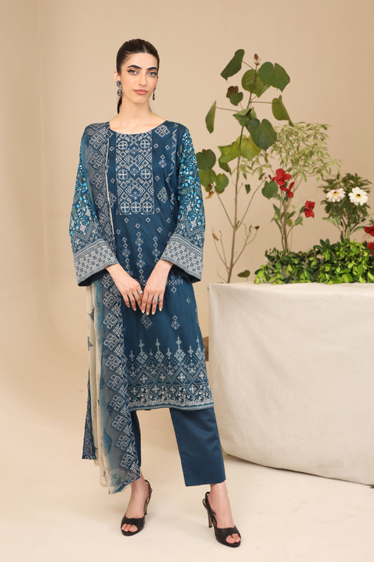 3 PIECE - PREMIUM EMBROIDERED LAWN - 8893