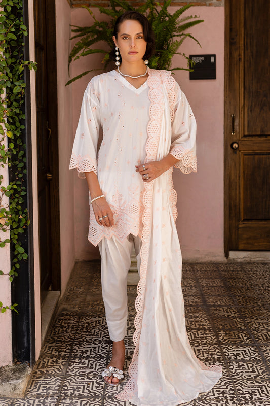 3 Piece - Premium Embroidered Jacquard Lawn - 5554