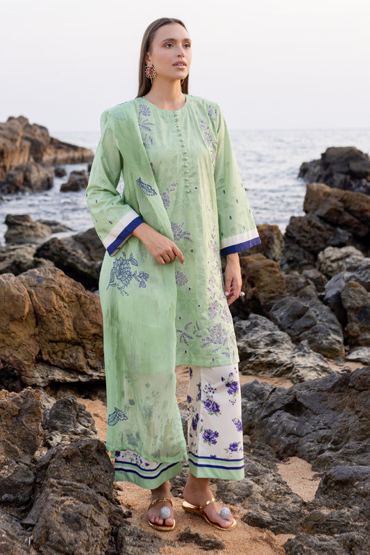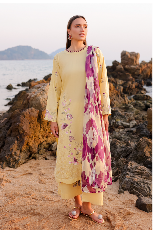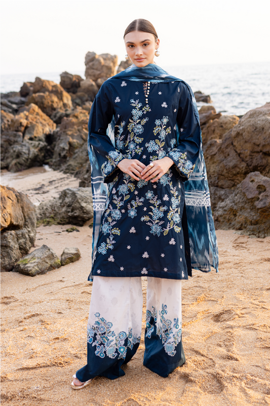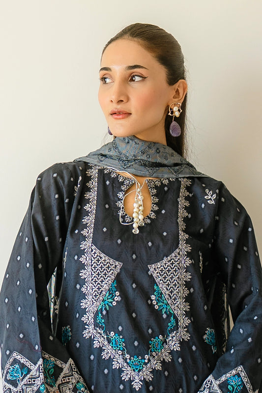 3 Piece - Premium Embroidered Jacquard Lawn - 5555