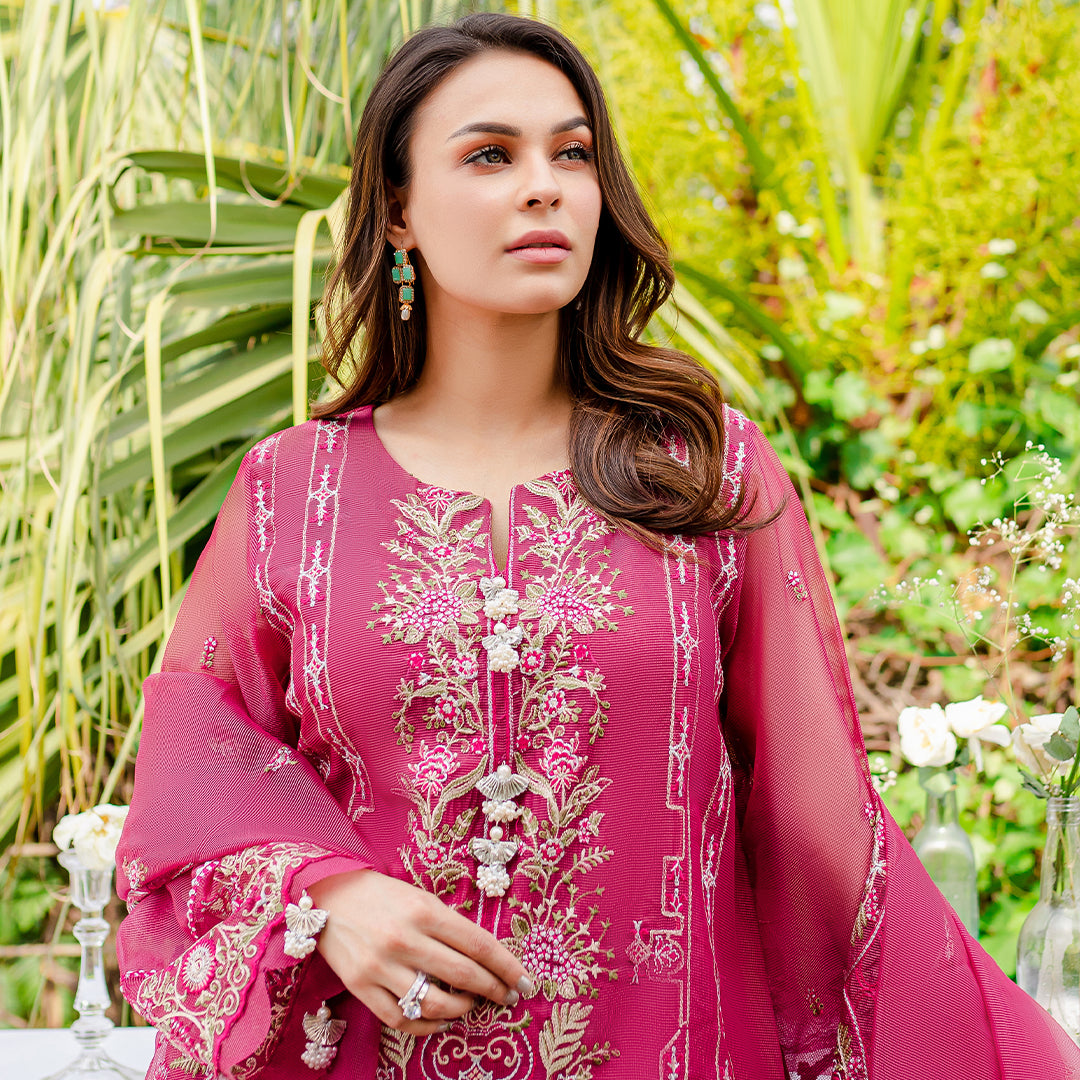 4 Piece – Abr Magenta – Cotton Net Embroidered Suit