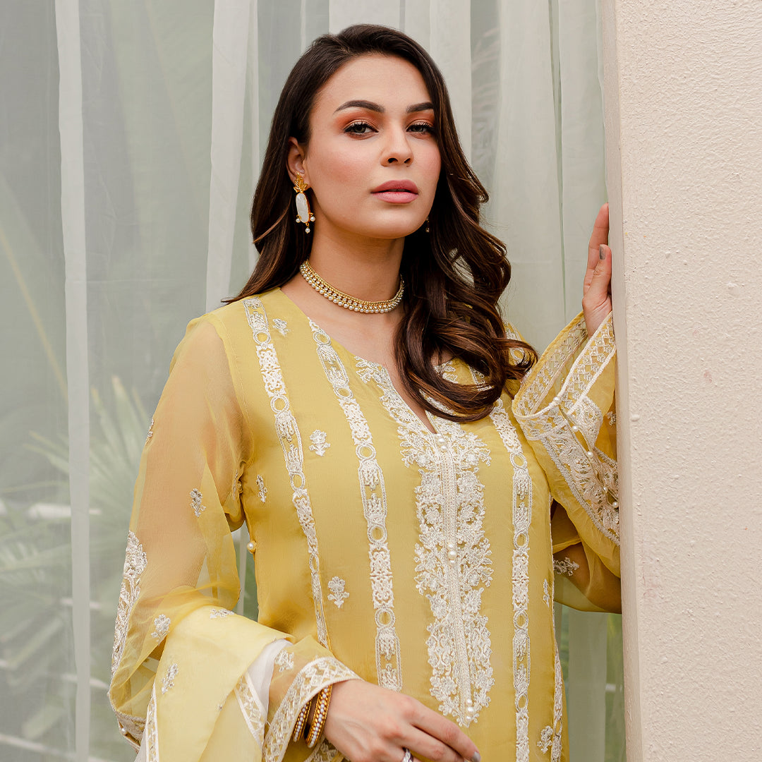 4 Piece – Amal Yellow – Organza Embroidered Suit