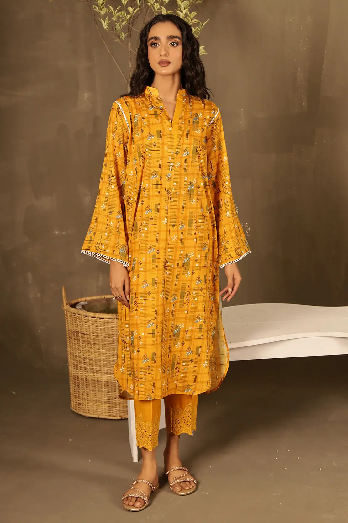 2 Piece - Printed Lawn Shirt with Embroidered Trouser - 7634