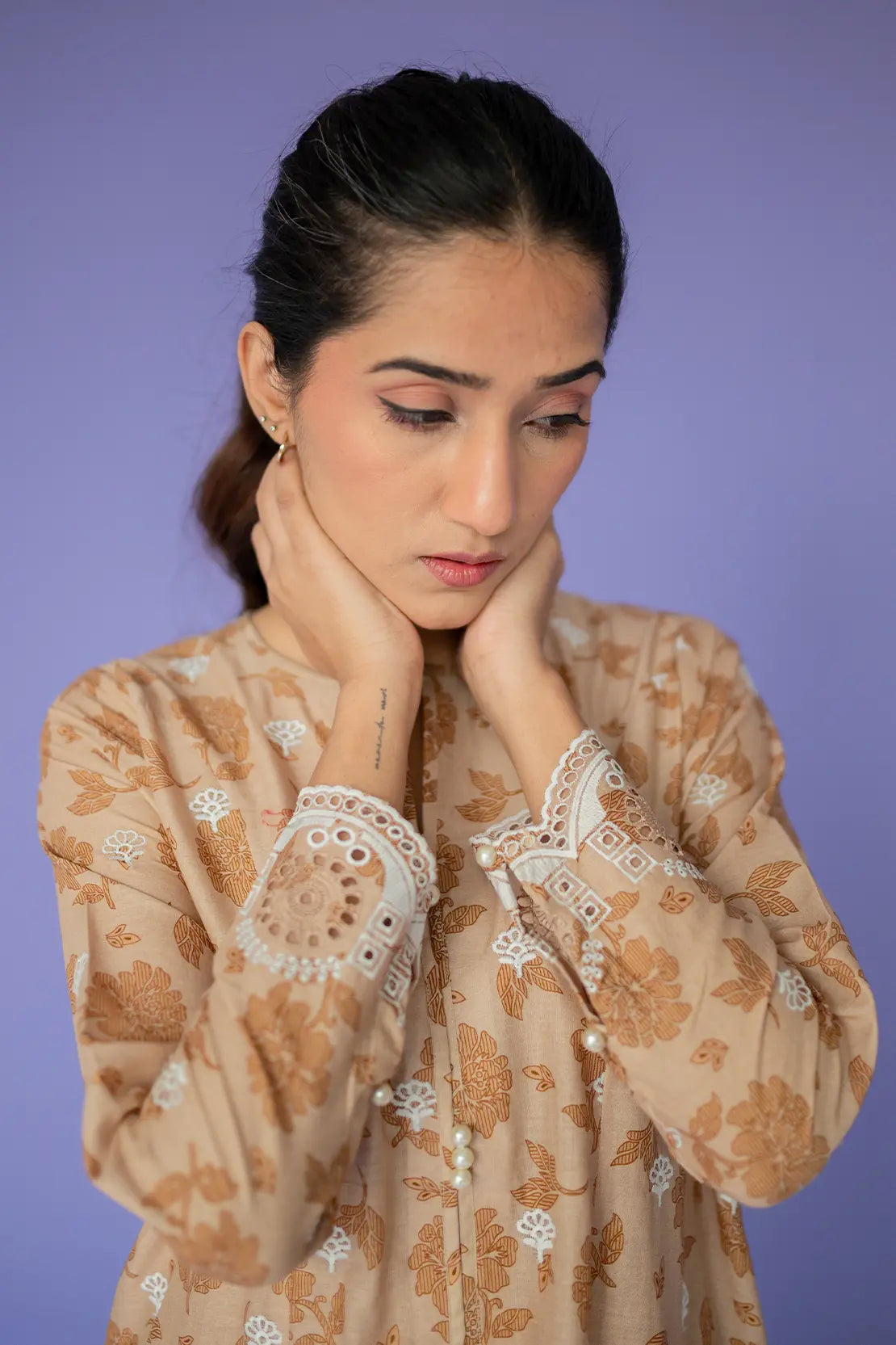 Shirt: Digitally Printed Premium Lawn Digitally Printed Premium Lawn with Chikankari Embroidered Front, Back and Sleeves.