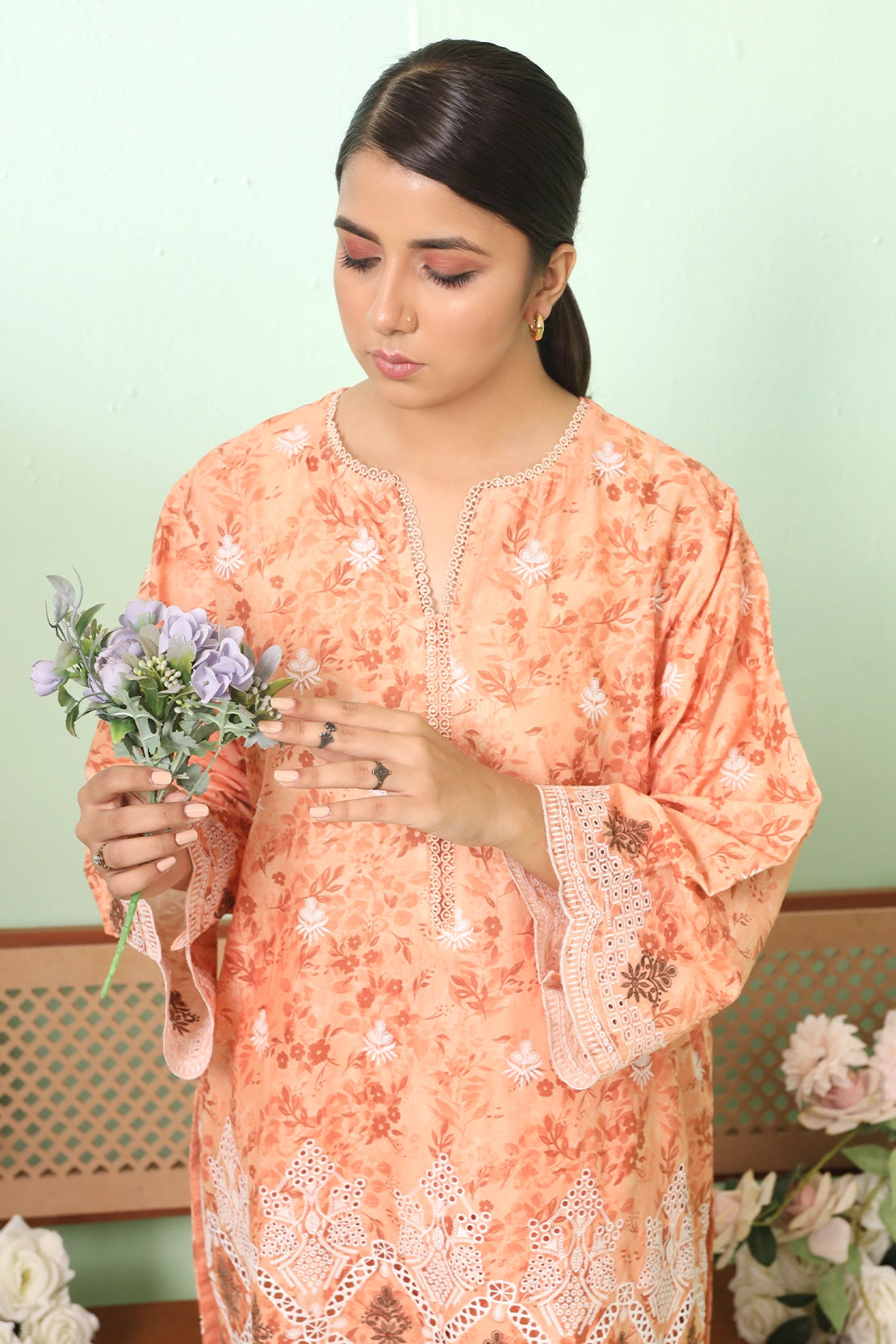 Shirt: Digitally Printed Premium Lawn with Chikankari embroidered front, back and sleeves.