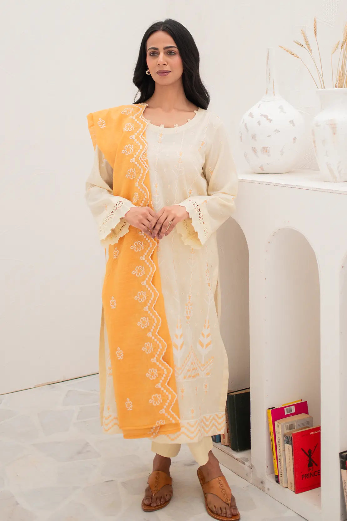 Shirt: Premium Embroidered Textured Dyed Lawn