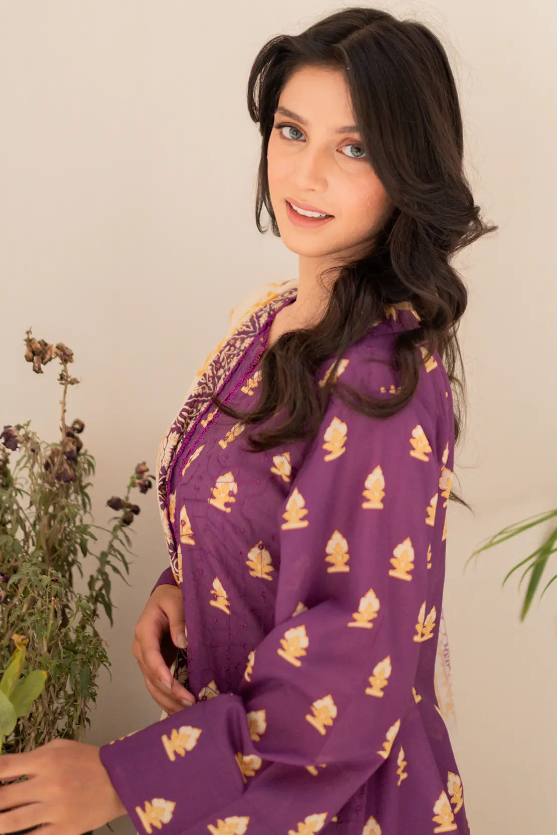 Shirt: Digitally Printed Premium Lawn with ChikanKari Front