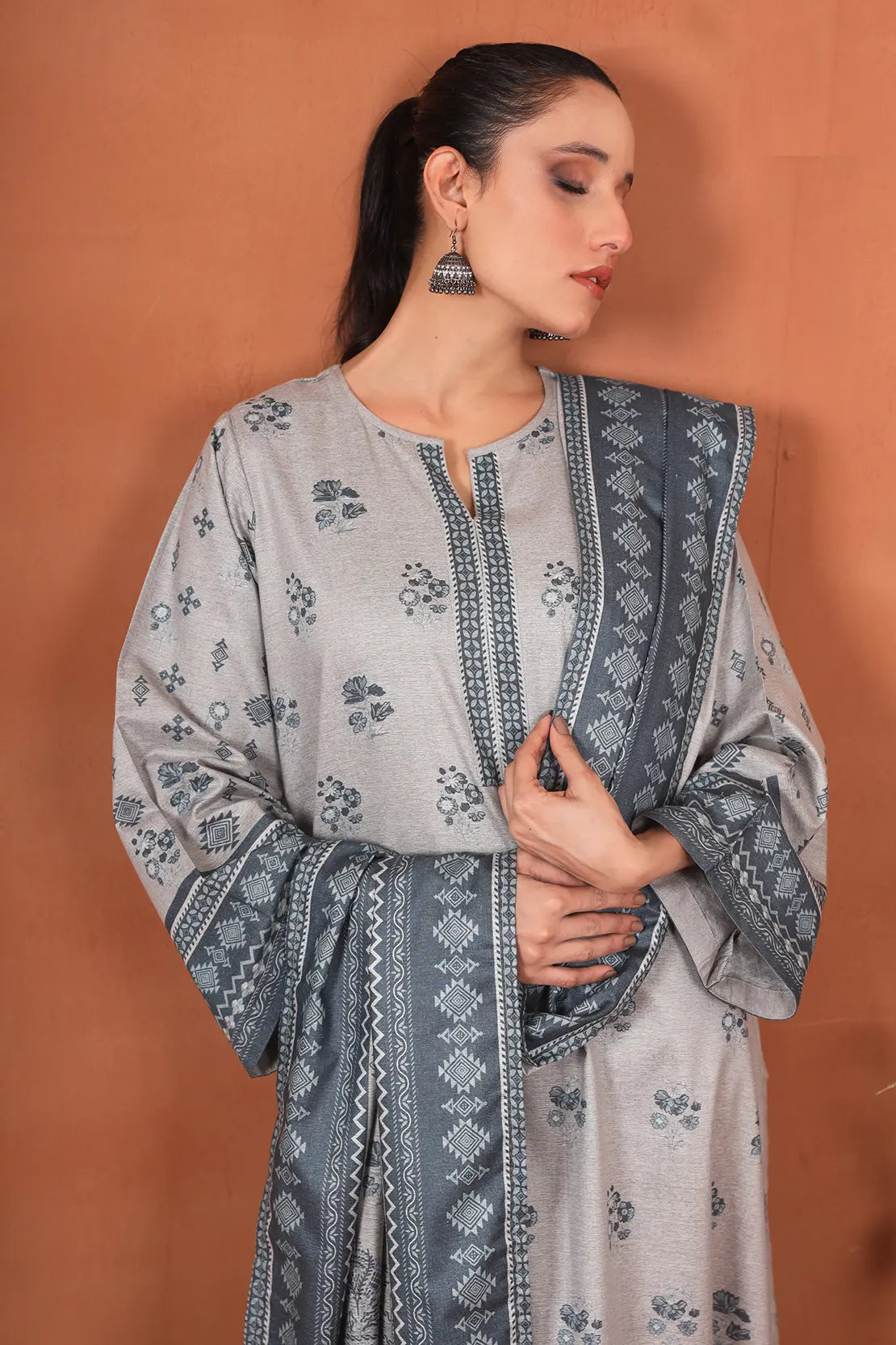Dupatta: Luxury Digitally Printed Black Chambray Winter Fabric