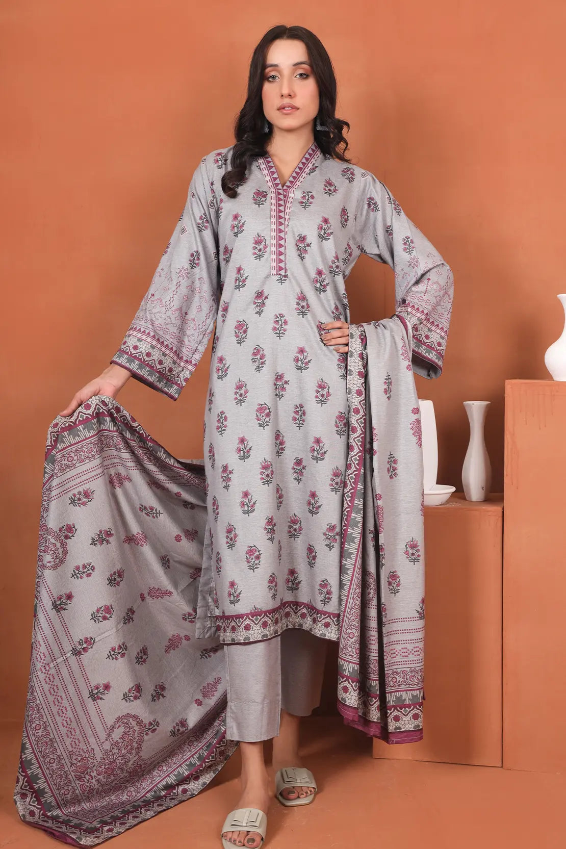 Dupatta: Luxury Digitally Printed Black Chambray Winter Fabric