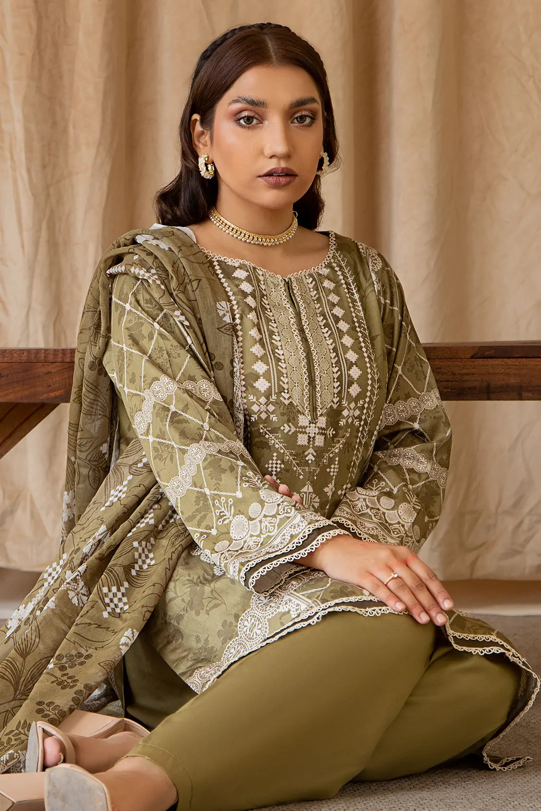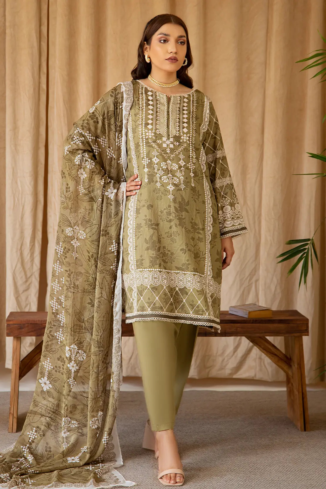 3 Piece – Luxury Printed Cotton Satin – 8232
