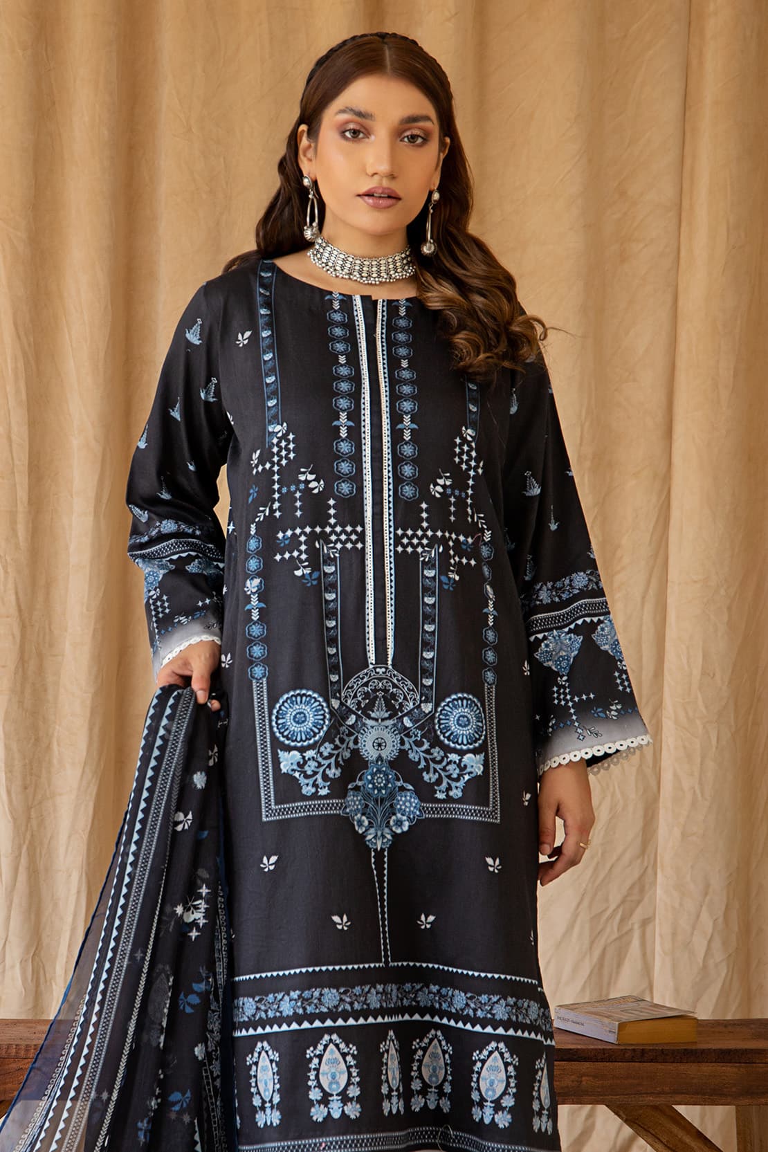 3 Piece – Luxury Printed Cotton Satin – 8236