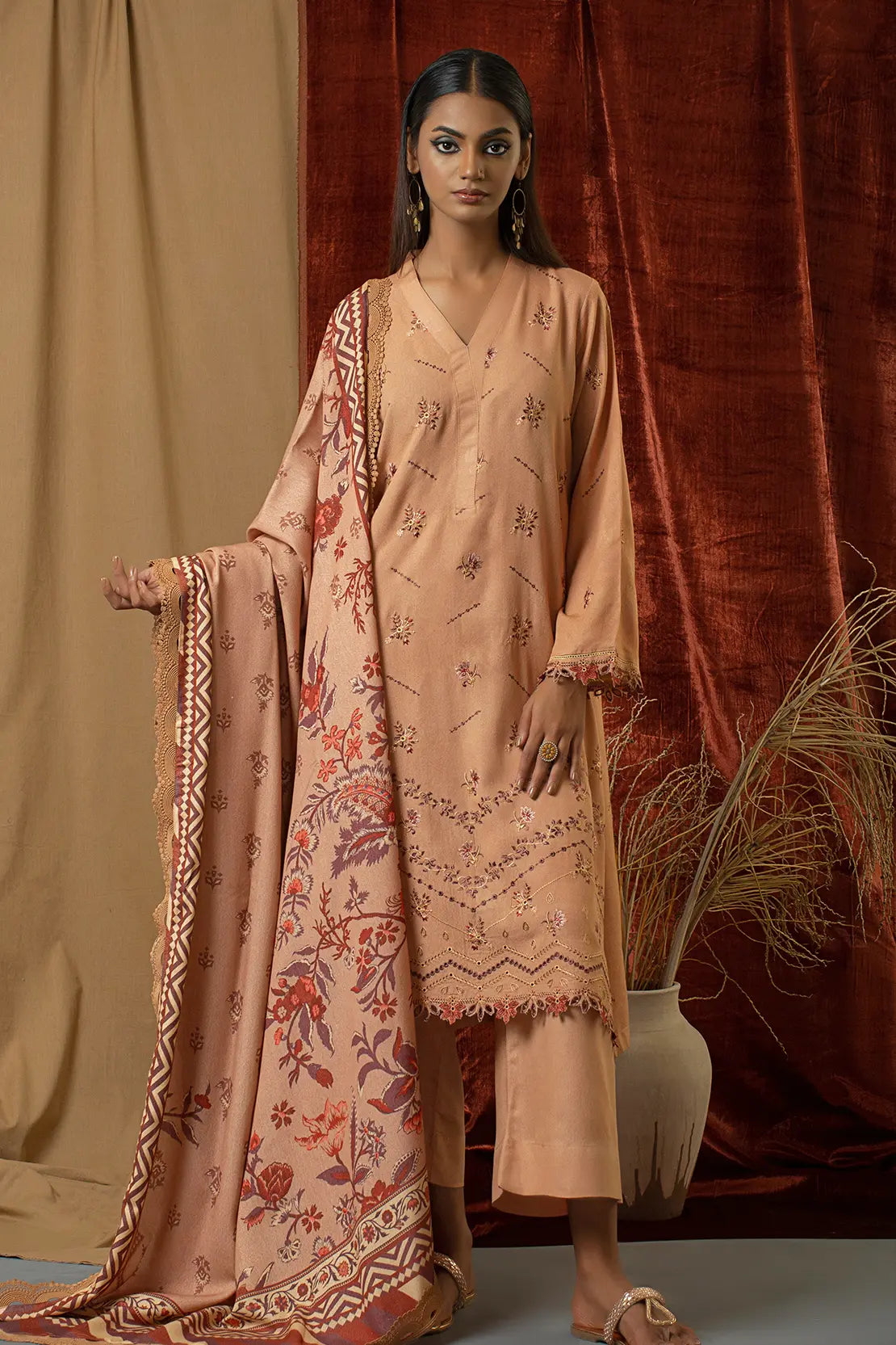 3 Piece – Premium Embroidered Karandi – 8300