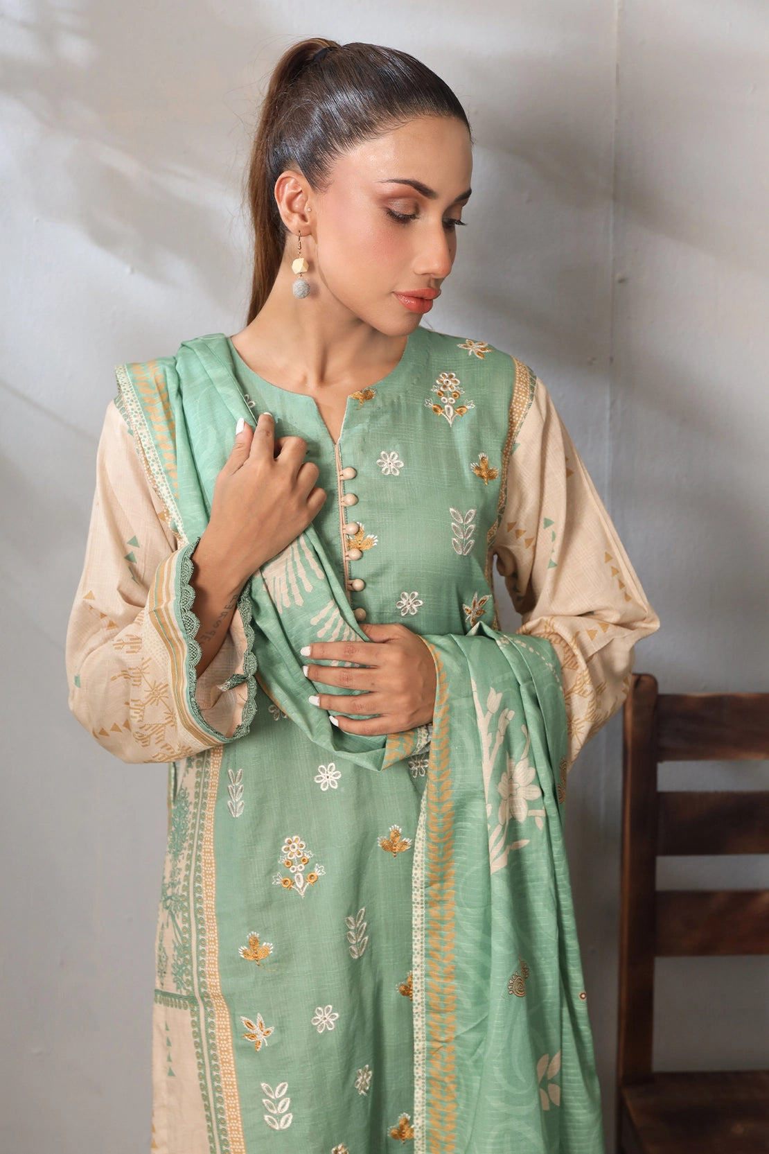 3 PIECE - PREMIUM EMBROIDERED LAWN - 9093