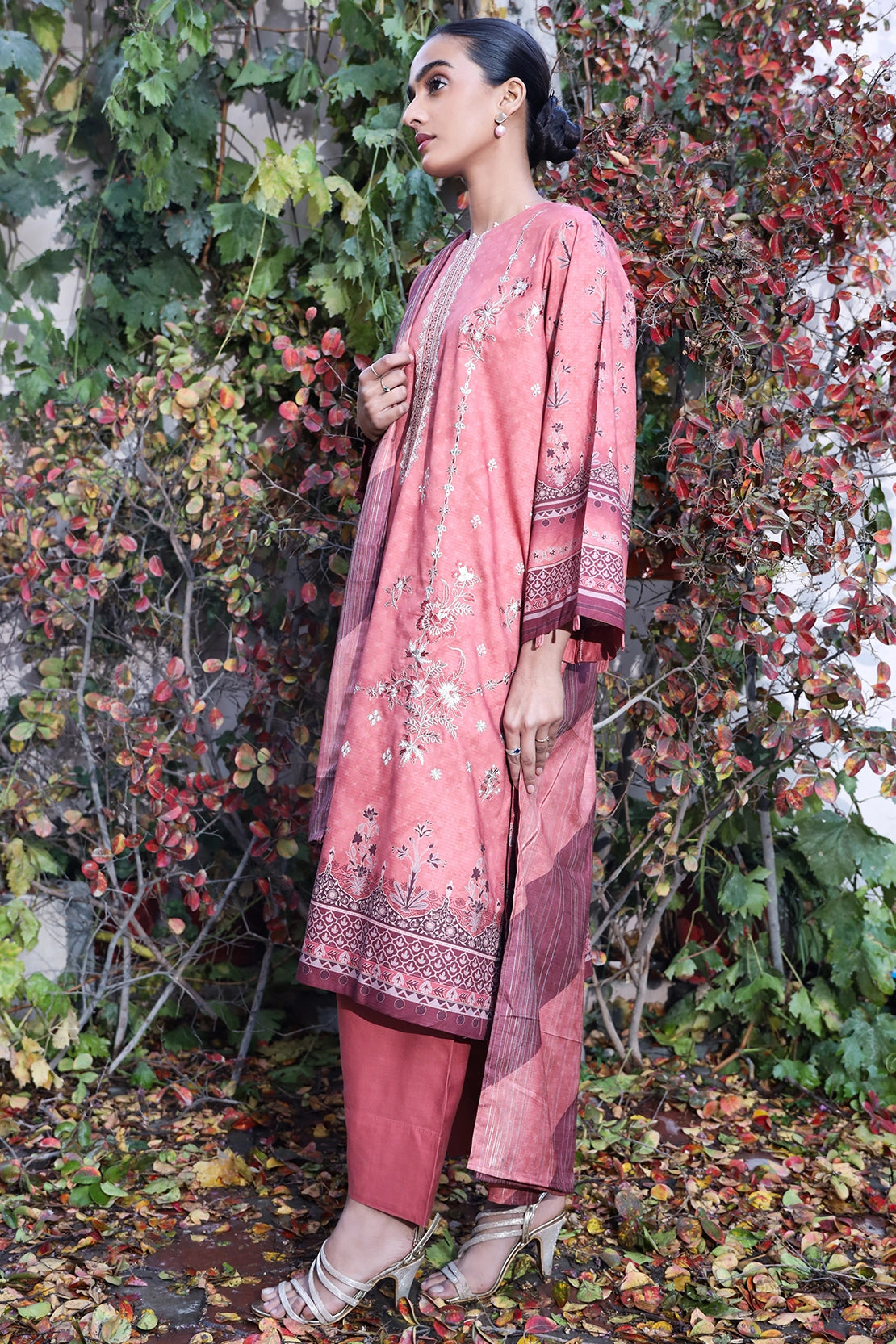 Shirt: Digitally Printed Embroidered Slub Linear Linen
