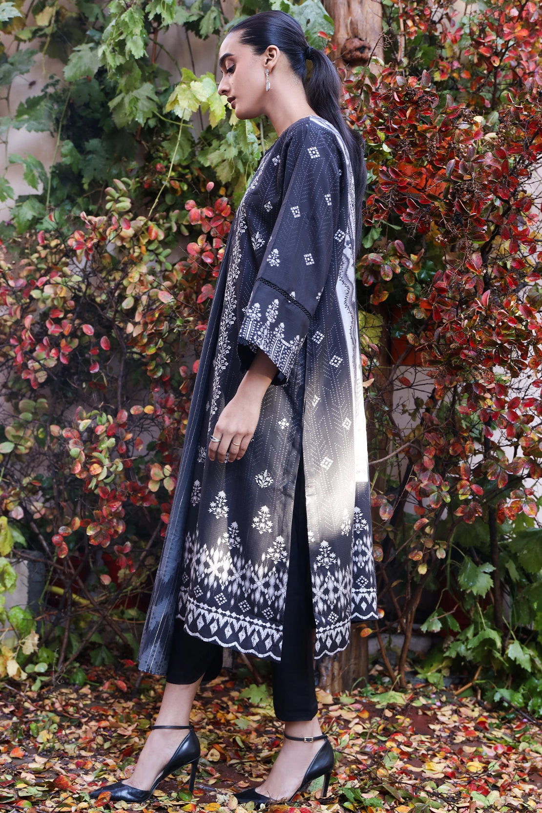 Shirt: Digitally Printed Embroidered Slub Linear Linen