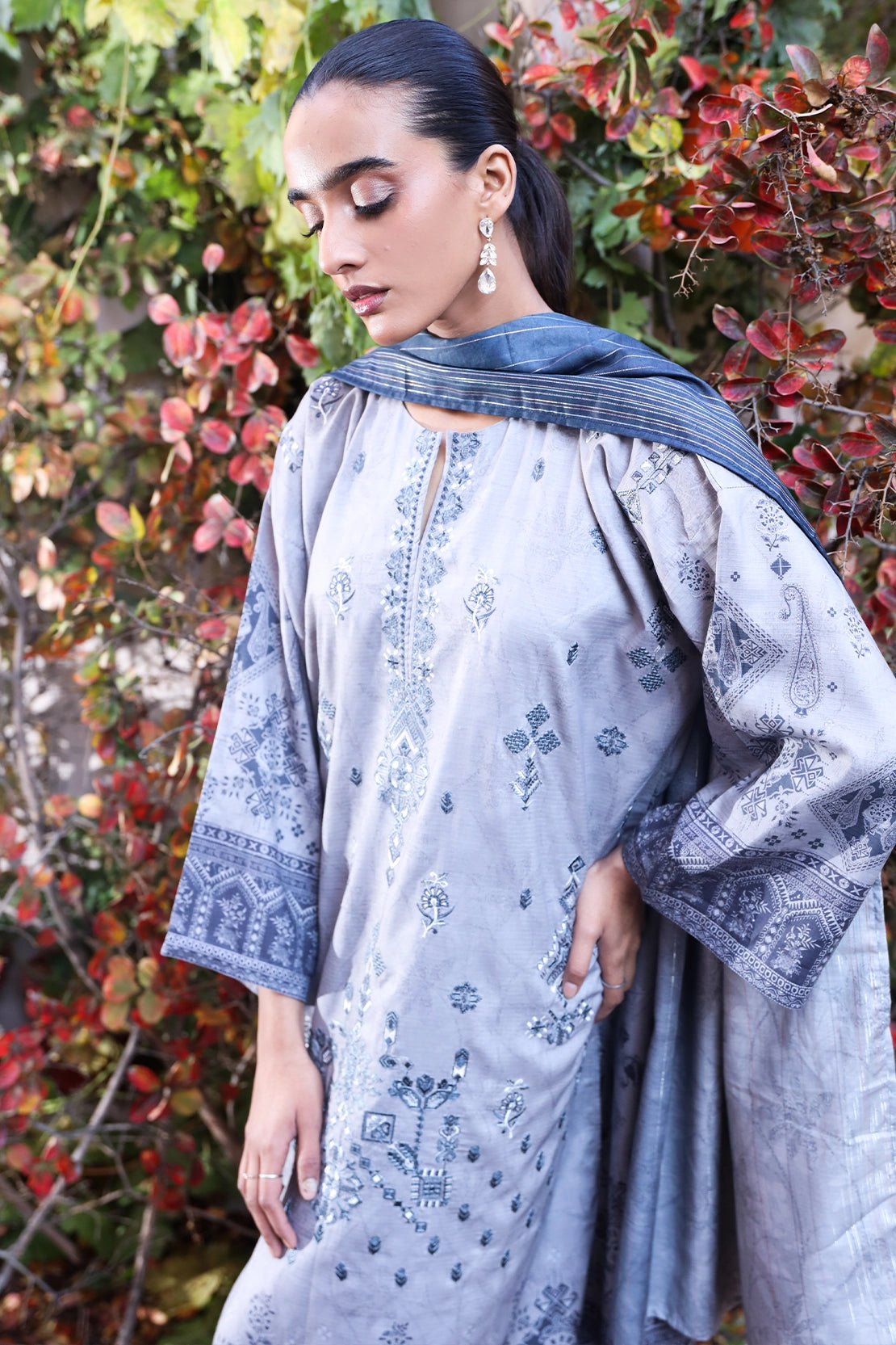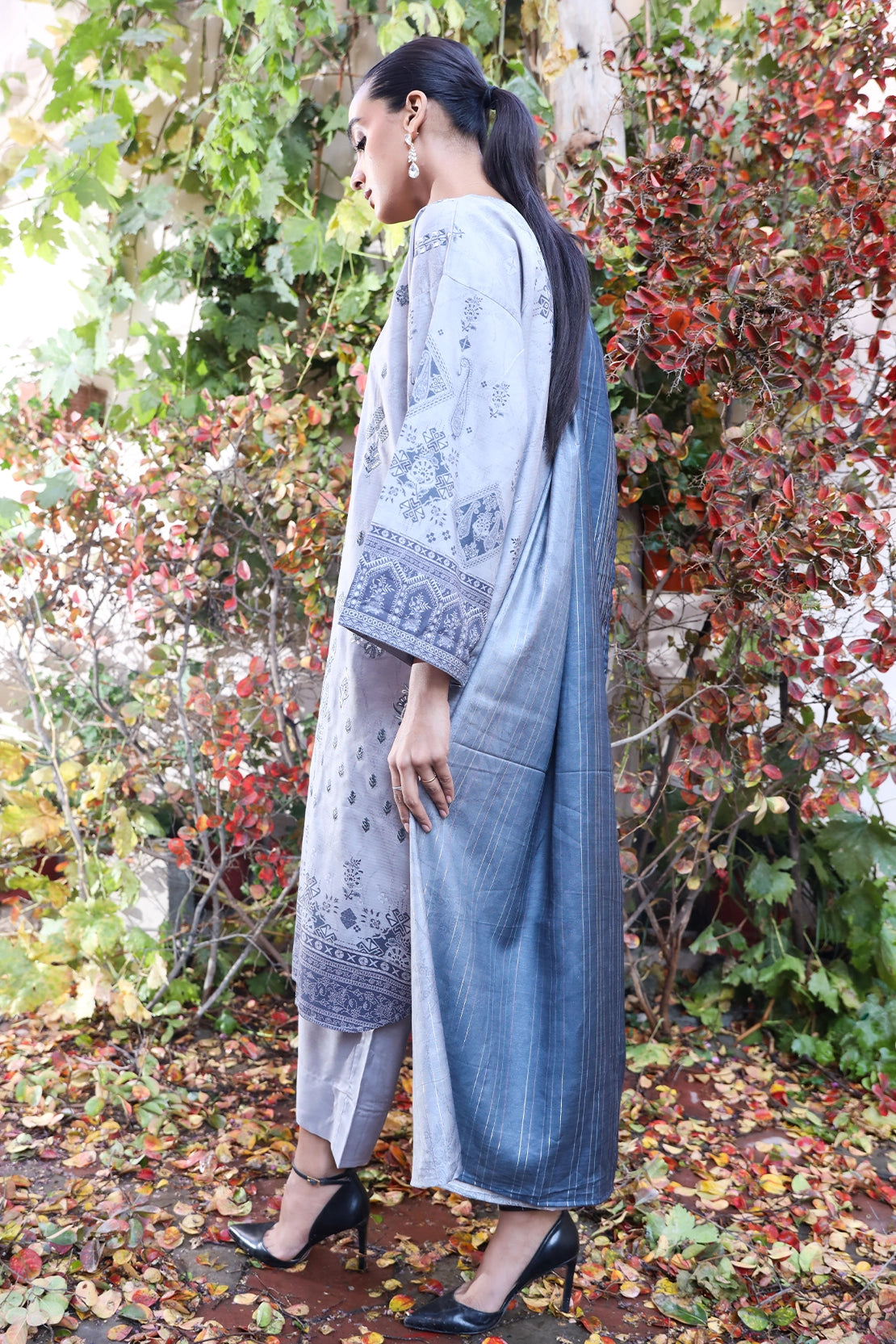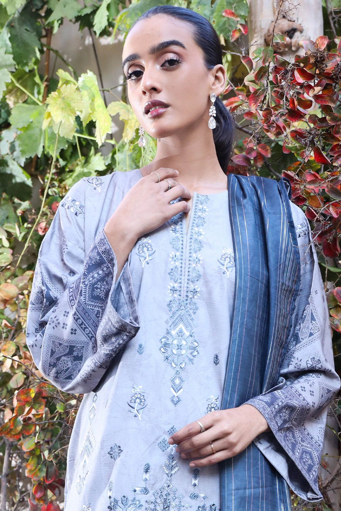 Shirt: Digitally Printed Embroidered Slub Linear Linen