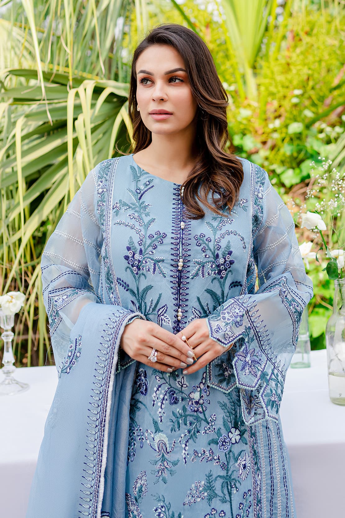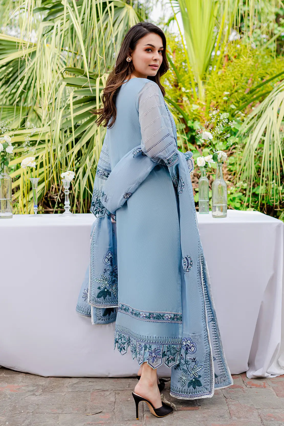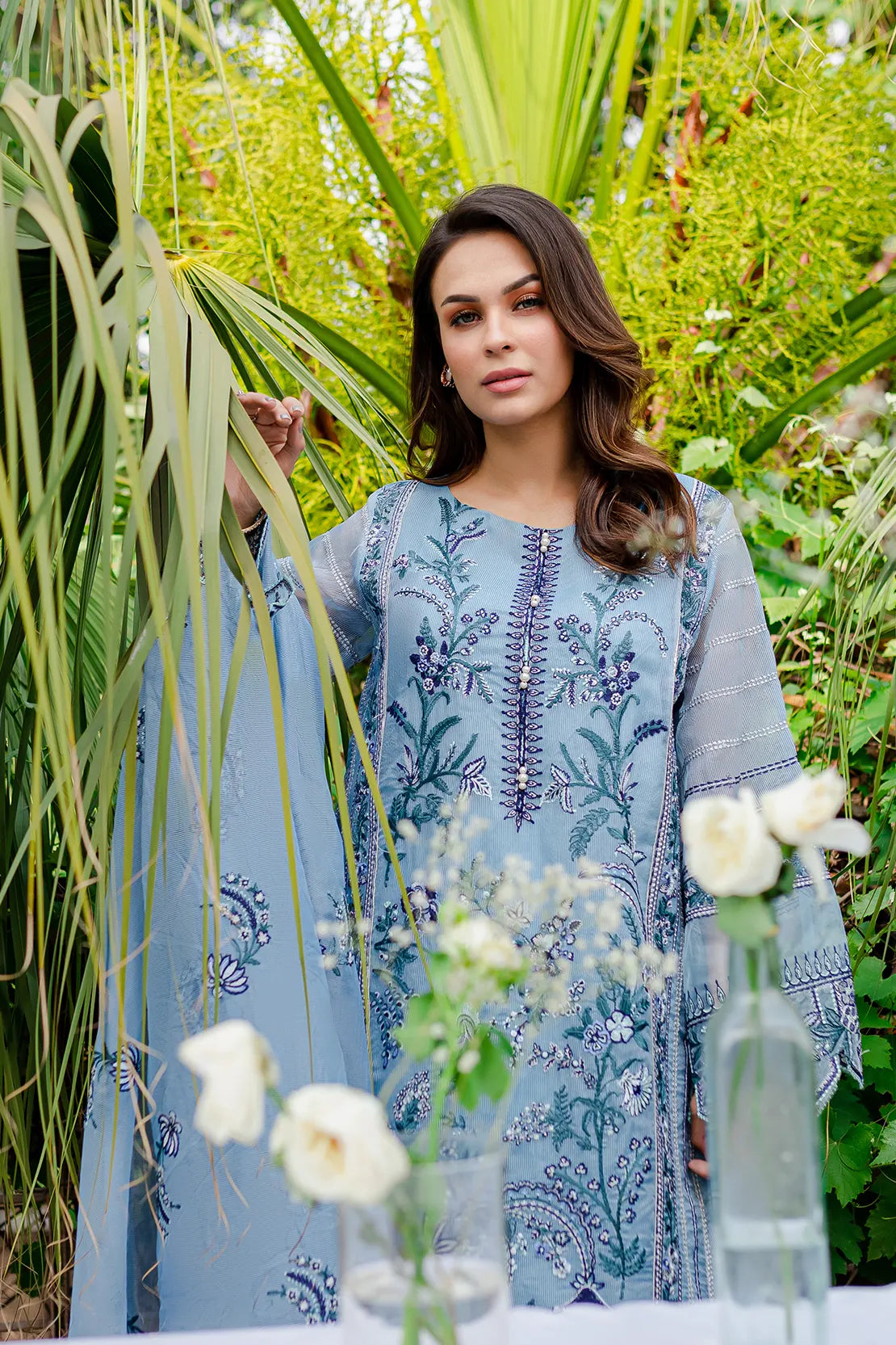 4 Piece – Mareen Sky Blue – Cotton Net Embroidered Suit
